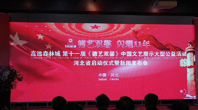 中国原陆军参谋学院副院长杨则冉、河北省文化厅原厅长李九元、中国艺术家协会副秘书长何佳、河北高远集团企划部总监梁冰在来宾们的见证下按动水晶球,共同启动“高远杯”第十一届“德艺双馨”文艺展示河北赛区活动。仪式上,国家一级书画师孙玉国、河北“德艺双馨”艺术家徐顺明等9名书画家,为启动仪式赠送了他们创作的精美作品。